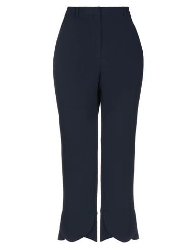 crepe, no appliqués, basic solid color, high waisted, regular fit, straight leg, hook-and-bar, zip, multipockets , Color: Midnight blue , Size: 6