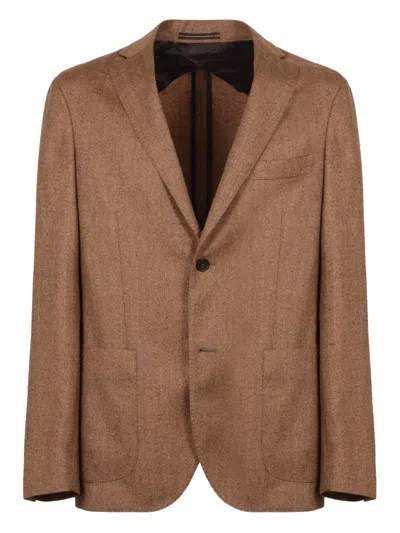 brown notch lapel two-button closure two pockets breast pocket