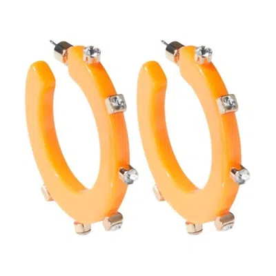 Women's Large City Girl Jewel Hoop Earrings In Tangerine In Orange