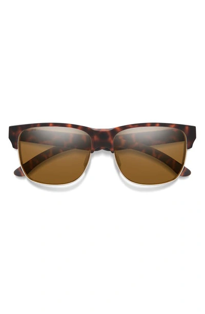 SMITH Lowdown Split 56mm Chromapop™ Polarized Square Sunglasses In Matte Tortoise / Brown