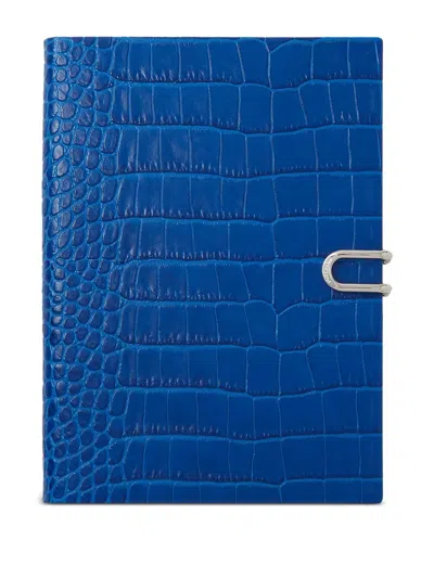 SMYTHSON Crocodile-embossed Notebook In Blue