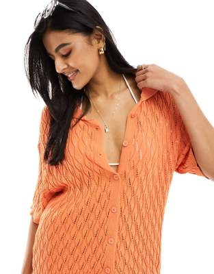 SNDYS Crochet Button Up Shirt In Orange - Part Of A Set