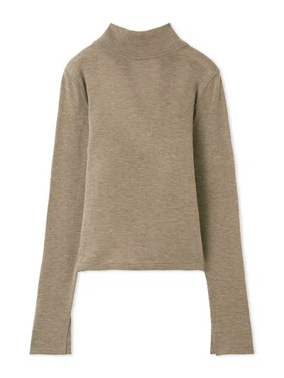 SNIDEL Open Back Long Sleeve Turtleneck Top In Neutral