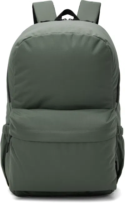 Nylon taffeta backpack in green. · Webbing carry handle · Adjustable padded shoulder straps · Press-release sternum strap · Zip pocket at face · Patch pocket at sides · Zip pocket at padded back face · Zip closure · Zip pocket at interior · Laptop compartment · Mesh lining · H18 x W11 x D5.75 Supplier color: Grey