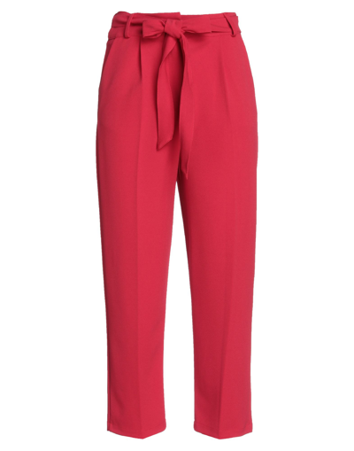 crepe, basic solid color, belt, high waisted, regular fit, straight leg, button, zip, multipockets, stretch , Color: Red , Size: 6