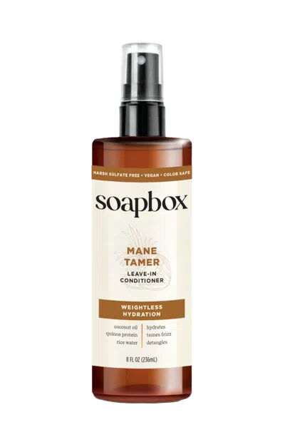 Mane Tamer Weightless Leave-In Condition. Benefits: Welcome to the mane event! This leave-in is leaving tangled, dry hair days in the past and leaning in on smoother, nourished, frizz-free looks. We've also supercharged this leave-in with a custom 5X nutrient complex for healthier-looking hair made easy. This color-safe, hydrating leave-in conditioner is formulated for all hair types for both men and women, and is silicone-free, paraben-free, gluten-free, and vegan. For every Soapbox item sold, a bar of soap is donated to someone in need.. Features: HYDRATE, DETANGLE & CONTROL FRIZZ with this leave-in for weightless moisture, soft strands, and healthier-looking hair made easy.. COCONUT OIL: helps to repair and nourish dry, damaged strands.. QUINOA PROTEIN: softens and helps fright frizz.. RICE WATER: promotes smoother, detangled hair.. VITAMIN E: supports stronger hair.. VITAMIN B5: known to help lock-in moisture.. MADE IN THE USA, Cruelty-Free, Vegan and Gluten Free. Free from harsh sulfates and chemicals, parabens and phthalates.. MAKE A DIFFERENCE your purchase of this Soapbox product also donates a bar of soap to someone in need either locally or abroad, supporting our mission to make hygiene essentials accessible to everyone. Track your donation with the Hope Code on the back of your product.. :