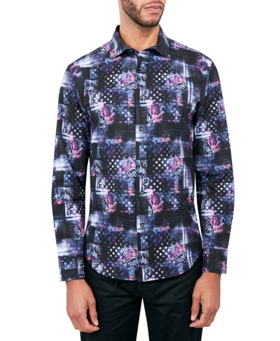 SOCIETY OF THREADS Men's Regular-fit Non-iron Performance Stretch Patchwork-print Button-down Shirt In Black