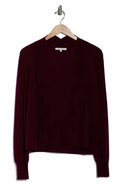 SOFIA CASHMERE Scallop Edge Open Cardigan In Burgundy