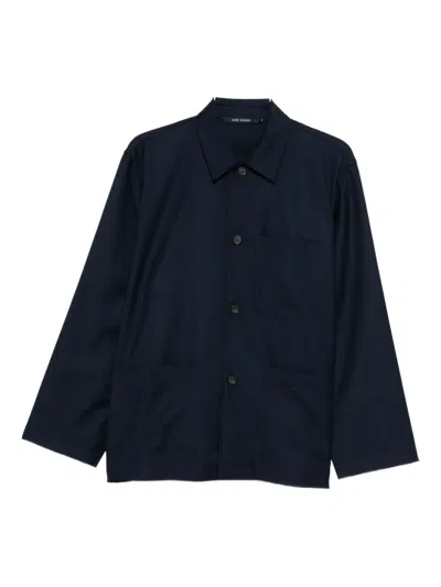 blue button fastening chest pocket front pockets