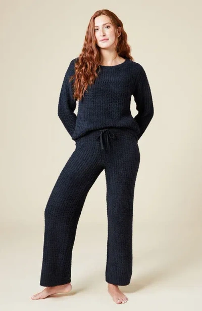 Waffle Marshmallow Boat Neck Lounge Set In Black