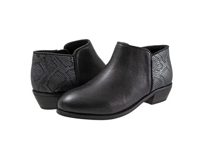 SoftWalk Rocklin - Women's Shoes : Black/Snake : Take on the day in the versatile Rocklin bootie from SoftWalk. ; Premium leather or suede upper with a round toe. ; Side zip closure with tassel for easy on and off. ; Features brushed microfiber lining with foam backing for all-day comfort. ; Fabric and leather-lined dual-density footbed with heel and arch inserts for added comfort and support. ; Supportive steel iron shank. ; Leather welt. ; Fashionable stacked heel. ; Rubber outsole. ; Imported. Measurements: ; Heel Height: 1 1 4 in ; Weight: 12 oz ; Circumference: 10 in ; Shaft: 4 1 2 in ; Platform Height: 1 4 in ; Product measurements were taken using size 8, width M (B). Please note that measurements may vary by size. | SoftWalk Rocklin Women's Shoes Black/Snake : 6 M (B), Leather