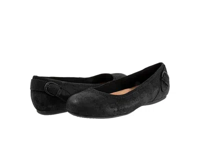 SoftWalk Sydney - Women's Flat Shoes : Black Suede : Perfect to pair with different outfits and styles, the SoftWalk Sydney shoes are ballet flats with a decorative buckle and a comfortable round toe silhouette. The flexible rubber outsole and removable foam cushioned footbed provide unparalleled comfort with casual appeal. These flat shoes are designed with a leather upper and polyester lining that make them comfortable for all-day wear. These leather shoes serve as a great choice to match your casual outfits and looks. ; Slip-on style. ; Imported. Measurements: ; Heel Height: 1 4 in ; Product measurements were taken using size 7, width M (B). Please note that measurements may vary by size. | SoftWalk Sydney Women's Flat Shoes Black Suede : 9 N (A), Leather/Polyester/Rubber
