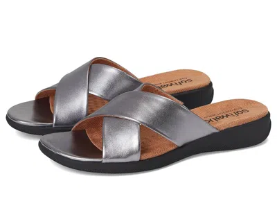 SoftWalk Tillman - Women's Shoes : Pewter Soft Nappa Leather : The Tillman is a simple classic that you can enjoy all season long. ; Genuine leather upper features an open toe with crisscrossing straps. ; Convenient slip-on style with gore at instep. ; Soft suede interior lining caresses your bare feet in feel-good comfort. ; Patented Eggcrate construction features constant air flow technology and is naturally contoured to cradle your feet. ; Suede leather footbed lining. ; Features the flexible Tourist outsole for added support and slip-resistant treads. ; Imported. Measurements: ; Heel Height: 1 1 2 in ; Weight: 8 oz ; Platform Height: 1 2 in ; Product measurements were taken using size 7.5, width M (B). Please note that measurements may vary by size. | SoftWalk Tillman Women's Shoes Pewter Soft Nappa Leather : 7.5 WW (EE)