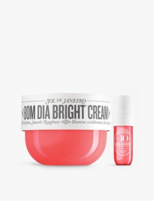Sol de Janeiro Bom Dia Bright™ Cream BundleIncludes:Bom Dia Bright™ Body Cream 240mlCheirosa 40 Perfurme Mist 30mlBom Dia Bright™ Body Cream Application: Smooth on daily, morning or night, for moisturising and retexturizing benefits all over. For speedier results, use two times a day on areas prone to ingrown hairs due to hair removal as well as bumpy, rough spotsCheirosa 40 Perfume Mist Application: Spray all over your body any time and all day longSkin type: suitable for all skin typesVeganTop notes: Black Amber Plum, Crème de CassisMiddle notes: Jasmine Blooms, Brazilian OrchidBase notes: Vanilla Woods, Warm MuskWorth £59Unfortunately, we are unable to exchange or refund this product, unless faulty.