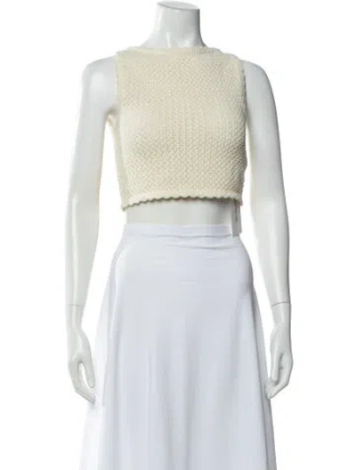 Solid & Striped Cropped Sweater White Sleeveless with Crew Neck Fit: Knitwear by Solid & Striped typically fit true to size. | Solid & Striped Crew Neck Sweater in White, Women's S