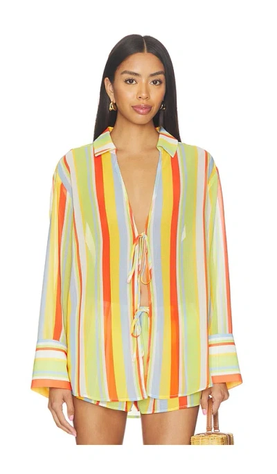 Solid & Striped The Jaclyn Tunic in Orange,Green. - size XS (also in L, M, S, XL) Solid & Striped The Jaclyn Tunic in Orange,Green. - size XS (also in L, M, S, XL) 100% polyester. Made in China. Machine wash. Front self tie closure. Lightweight chiffon fabric. Item not sold as a set. Garment is intentionally sheer, undergarments will show through. Please note undergarment not included. SLST-WS110. SP26-B2388CRK-SBA. Solid & Striped was established in New York in November of 2012. Their mission is to design and produce a timeless collection of Swim and loungewear that is made with the highest quality European and Japanese fabrics available. Each item is defined by an elegant simplicity that makes each piece essential to a classic wardrobe.