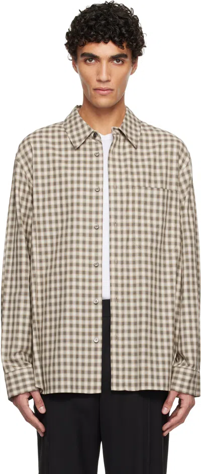 Cotton twill shirt. · Check pattern throughout · Spread collar · Button closure · Patch pocket at chest · Shirttail hem · Buttoned barrel cuffs Supplier color: Brown