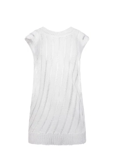 Solotre sweater made of cotton blend in white. Completely perforated. V-neck. Wide armholes. 76% cotton 24% nylon. Made in Italy.