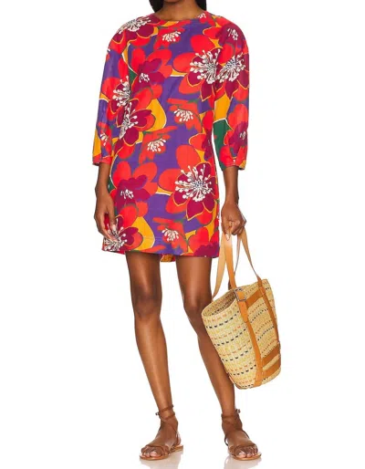 Floral Long Sleeve Open Back Mini Dress In Red Combo In Multi