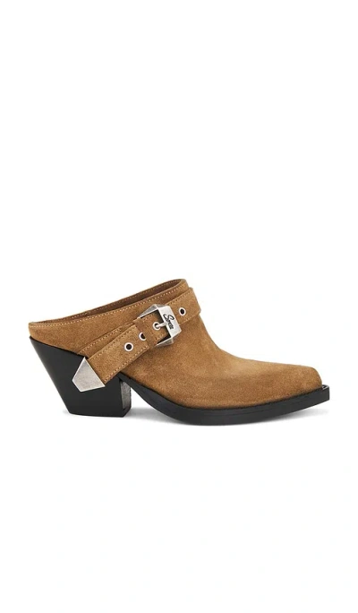 Sonora Leon Belt Mule in Brown. - size 39 (also in 35, 36, 37) Sonora Leon Belt Mule in Brown. - size 39 (also in 35, 36, 37) Suede upper with leather sole. Slip-on styling. Leather footbed and lining. Adjustable buckled strap at vamp. Pointed toe with wooden block heel. Approx 70mm/ 2.75 inch heel. SORA-WZ13. LEB60XBICRS08W.
