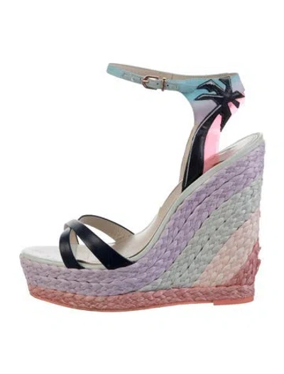 Sophia Webster Leather Espadrilles Silver Patterned Platform Wrap-Around Straps & Buckle Closure at Ankles Includes Dust Bag Designer Fit: Sandals by Sophia Webster typically run a half size small. Unfortunately, due to restrictions, this item may not be eligible for shipping in all areas. | Sophia Webster Leather Patterned Espadrilles in Silver, Women's 9