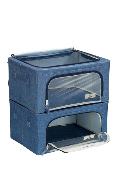 Front and top zipper opening makes it easy to store and remove contents. Multi-purpose for seasonal clothing, bedding, blankets, comforters, linens, holiday decorations, books, toys, baby clothes, shoes, handbags, and more. Color: blue. Set of 2. 15.75" L x 12" W x 8" H each. ImportedOrders cannot be shipped to Canada, Alaska, Hawaii, Puerto Rico or P.O. Boxes.
