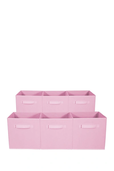 Perfect for organizing and cutting down on clutter, these Collapsible Storage Cubes add style and function to your cube organizer! Fabric drawers easily slide in and pull out of cube shelves thanks to sewn in handles! With a durable, eye-catching vertical stripe pattern, the Collapsible Storage Cubes are a terrific choice to keeping household items tidy! The Collapsible Storage Cubes are also specially designed to fit perfectly with the Storage Cube counterparts. together they form an unbeatable combination of color, function, and style. Organize and tote everything from toys to laundry inside sturdy cubes with bright color patterns and strong handles. From wrangling household items to collecting unruly toys, camouflage and conceal some of the most common household eyesores. Transform a closet or laundry room with cleverly organized baskets perfect for storing linens, clothes, seasonal items, holiday ornaments, and much more. If gadgets, bags, and shoes are constantly underfoot in your home, slide them in bins underneath a bench in the mudroom or stack them in your own unique configuration. In the kid`s room, create a FUN-ctional play area where Legos, books, and dolls have a cozy cube to call home. Bins are lightweight, sturdy, and easy for kids to place on the floor to grab their favorite toy. The possibilities are endless! Collapsible design assembles in seconds and folds flat for easy storage. Made of nonwoven polypropylene and cardboard with colorful lightweight fabric. Bins complement cube storage organizer shelves and provide adequate space to sort your clutter. Side handles allow for easy transportation. Soften storage with lightweight bins that make a practical addition to any room. Set of 6. Color: pastel pink. 10.75" L x 11" H x 10.75" W. ImportedOrders cannot be shipped to Canada, Puerto Rico, APO, FPO or P.O. Boxes.