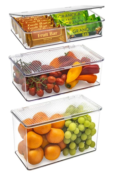 Set Of 3 Hinged Lid Storage Bins In Clear