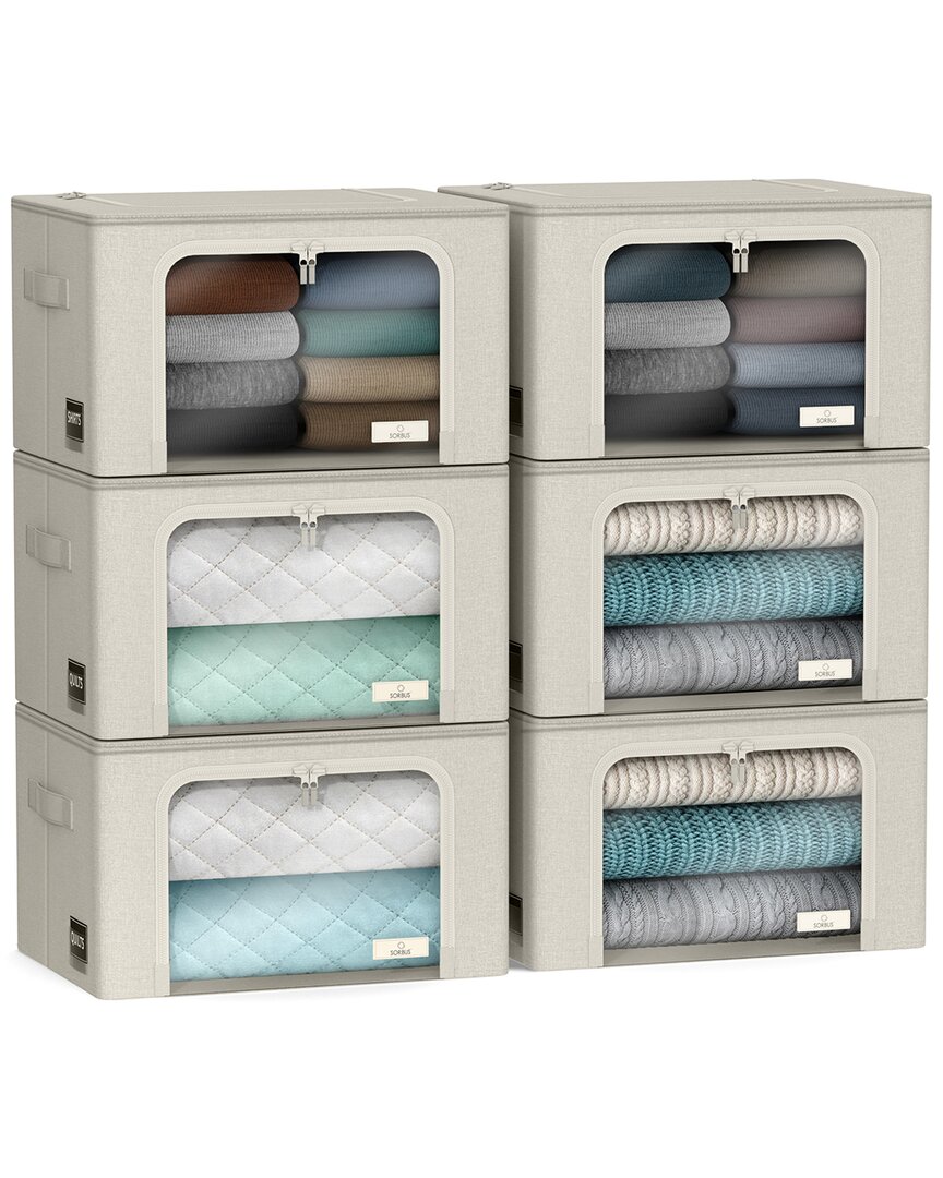 Color/Finish: Beige Design Details: Pack, Zip, And Transport Household Essentials The Sorbus Storage Bin Set It Features A Front And Top Zipper Opening, With Two Carry Handles, And A Large Transparent Front Window. The Generous Size Provides Plenty Of Room For Seasonal Apparel, Bedding, Linens, Holiday Decorations, Toys, Accessories, And More. A Fully Zippered Closure Protects Items From Dust, Pest, And Water Damage While The Large Clear Window Allows You To See Contents At A Glance. As A Bonus, Each Bin Includes A Content Id Window To Quickly Label What's Inside. This Set Of Two Can Be Used Individually Or Stacked Together In Your Designated Storage Area. When Not In Use, Simply Collapse Flat And Tuck Away For Easy Storage. . Front And Top Loading Design With Zipper Closure. . Clear Front Window For Quick Viewing Measuring 11 H X 14 W. Structured With A Metal Frame Supports Stacking. Completely Collapsible For Easy Storage. Portable Side Carry Handles For Easy Transport. Content Id Window For Labeling Measuring 2.5 H X 3 W. Pops Open And Collapses Flat For Storage. Dust-Proof, Moisture-Proof, And Moth-Proof. Clean With A Damp Cloth And Air Dry. Made Of 100% Nonwoven Polyester And Metal Frame. Each Bin Measures Approximately 15 L X 19.5 W X 13 H Measures 19.5 X 13 Capacity: 66 Q Materials: Fabric, Metal Imported Contents Of Set: 6 Storage Bins