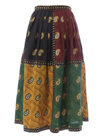 Pre-owned Patterned Button Midi Skirt In Green