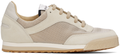 Low-top suede and semi-transparent ripstop sneakers in beige. · Lace-up closure · Logo patch at tongue · Padded collar · Grained calfskin and mesh lining · Foam rubber midsole · Treaded rubber sole Supplier color: Sand