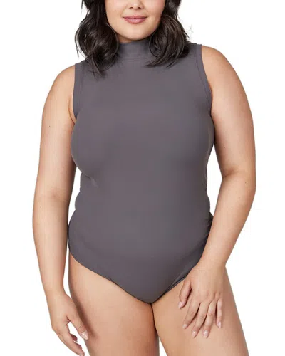 ® Suit Yourself Ribbed Mock Neck Sleeveless Bodysuit In Blue
