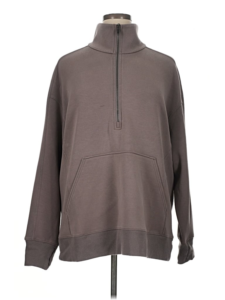 SPANX Sweatshirt, Size: 1X. Item Details: Brown, High Neck, Long Sleeve, Zippers, Women's Tops, Polyester/Modal/Elastane