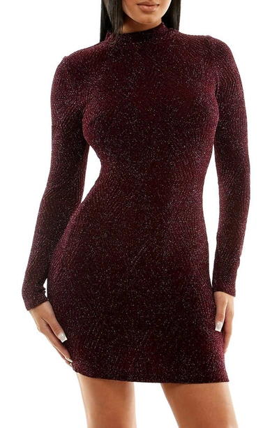 Glitter Mock Neck Long Sleeve Jacquard Knit Body-con Minidress In Raisin,black