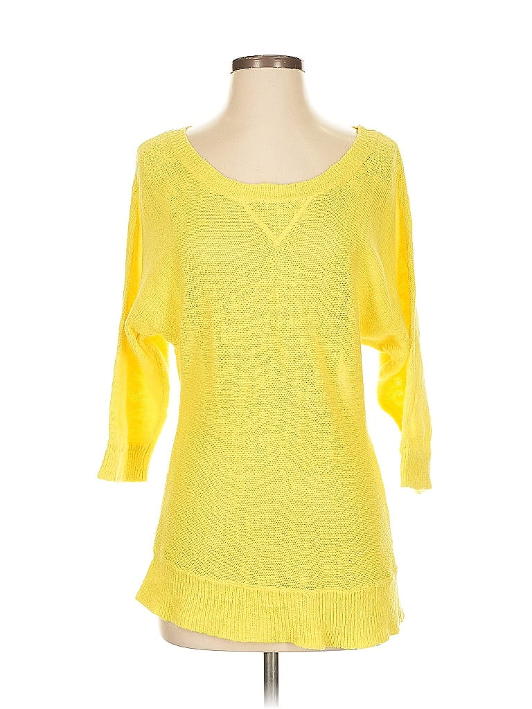 Spense Pullover Sweater, Size: Small. Item Details: Yellow, Cold Shoulder Neckline, 3/4 Sleeve, Women's Tops, Linen/Cotton