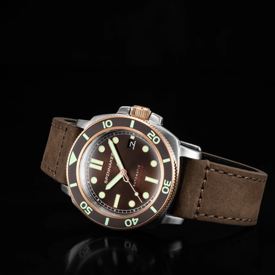 Spinnaker Hull Automatic Cognac Brown The Hull diver is robust but still elegant as a timepiece. Designed with a nod to vintage design cues and created by a manufacture that is deliberate, dedicated, and detailed in every way. With Swiss Super Luminova applied on the dial indexes and hands, it is a classic diver style dial designed for visibility and legibility. A small nod to some of the vintage flair can be found in the railway style seconds tracks running around the hour and minute markers, making a pronounced diver dial that is bold yet refined and perfectly at home at the depths of the sea or on dry land. SPECIFICATIONS MOVEMENT Japan Automatic 3 Hands with Date CASE Material: Stainless Steel Diameter: 42mm Thickness: 14mm Lug to Lug: 50mm Shape: Round Color: Stainless Steel Glass: Sapphire Crystal Lens DIAL Color: Brown BAND Type: Genuine Leather Strap Width: 22mm WATER RATING Water Resistance: 30 ATM OTHER DETAILS Watch Weight (g): 110 Warranty: 2 Years International Spinnaker Hull Automatic Cognac Bro