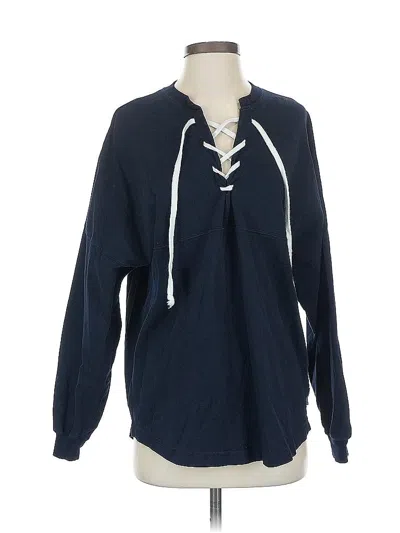 Spirit Jersey Pullover Sweater, Size: Small. Item Details: Blue, Tie Neck, Long Sleeve, Lace Up, Women's Tops, 100% Cotton