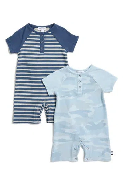 SPLENDID Babies' Assorted Camo Stripe 2-pack Romper In Light Blue Camo/navy Stripe