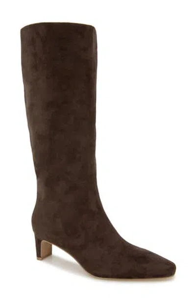A hidden elastic gore eases the fit of a soft faux-suede boot fashioned with an almond toe and slender heel. 1 3/4" heel 13 1/2" shaft Textile upper/textile and synthetic lining/synthetic sole Imported