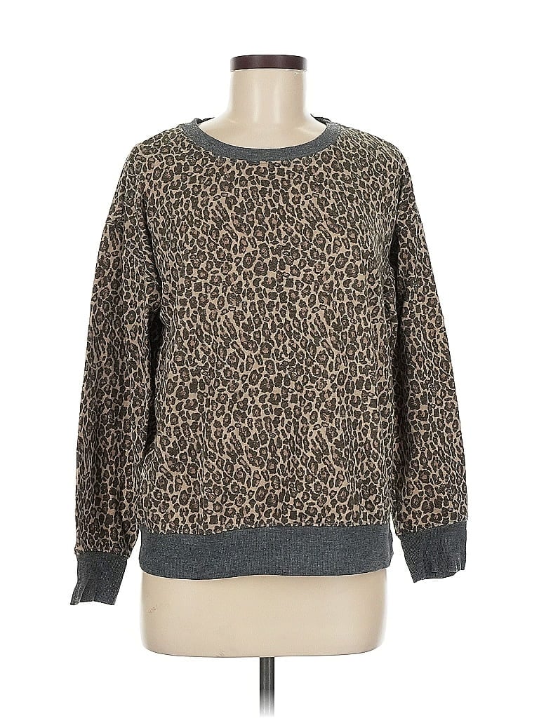 Splendid Pullover Sweater, Size: Medium. Item Details: Brown, Animal Print Pattern, Crew Neck, Long Sleeve, Women's Tops, Polyester/Elastane