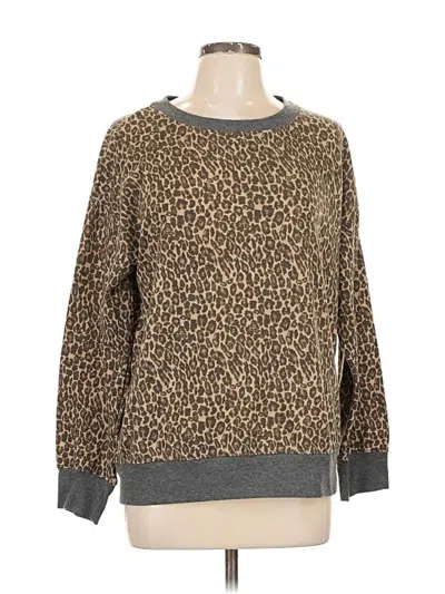 Splendid Pullover Sweater, Size: Large. Item Details: Brown, Animal Print Pattern, Crew Neck, Long Sleeve, Women's Tops, Polyester/Elastane