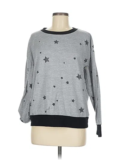 Splendid Sweatshirt, Size: Medium. Item Details: Gray, Stars Pattern, Crew Neck, Long Sleeve, Glitter, Women's Tops, Polyester/Elastane