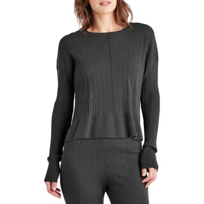 Introducing the Splendid Veronica Cable Sweater, a cozy and stylish addition to your wardrobe. This lead-colored sweater features dropped-shoulder sleeves and a cropped hem with side slits for a modern twist. Made from a blend of 72% viscose and 28% polyester, this sweater is soft and comfortable to wear. The Veronica Cable Sweater measures approximately 21.25 inches from shoulder to hem, and is available in a range of sizes. The model is 5'10' and is wearing a size small, but please note that measurements may vary slightly by size.This sweater is dry clean only and is imported. Embrace effortless style and comfort with the Splendid Veronica Cable Sweater.