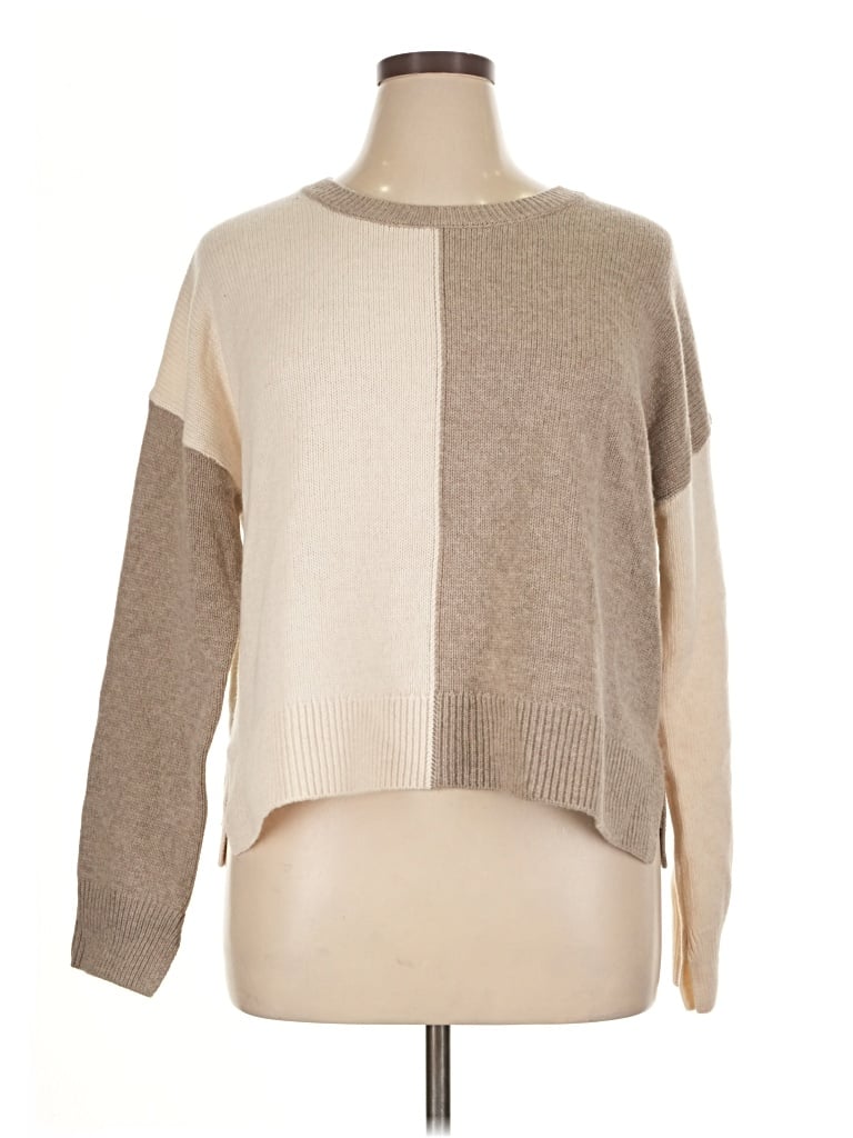 Splendid Wool Pullover Sweater, Size: X-Large. Item Details: Tan, Color Block Pattern, Crew Neck, Long Sleeve, Women's Sweaters & Sweatshirts, Wool/Cashmere