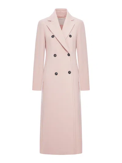 Pink wool Comune coat from Sportmax featuring lapel collar, long sleeves, double breasted, one back slit and long lenght. Composition: _, 100% Virgin Wool