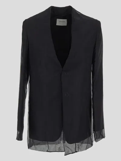 Long sleeves | Sheer hem | Single-breasted | Notched lapel | Button closure