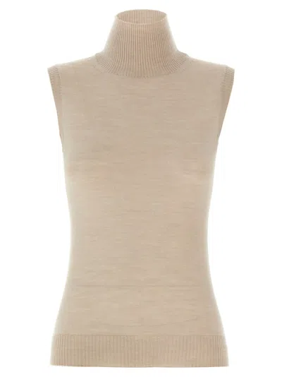 A High-Neck Sleeveless Top Made From Soft Virgin Wool Offers A Fitted Silhouette That Gently Hugs The Body. The Ribbed Texture At The Neck And Hem Adds Sophistication, Making It Suitable For Both Casual And Elegant Occasions.Specifications:- Composition: 100% Virgin Wool - Fit: True To Size - Origin: Made In Romania