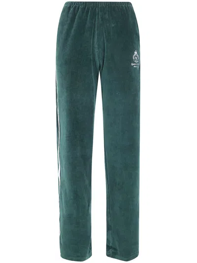 SPORTY AND RICH Crown Tennis Velour Sweatpants Side Stripes In Green