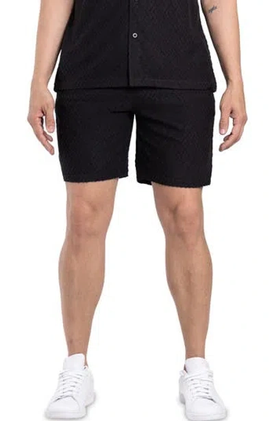 SPRING + MERCER Casual Jacquard Terry Shorts In Black