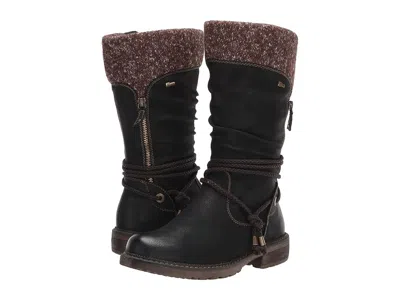 Spring Step Acaphine - Women's Boots : Black : Synthetic water-resistant uppers with a knitted topline make the Spring Step Acaphine tall boot a stylish and reliable choice for the season. ; Features a round toe, decorative lateral zipper, ruched shaft and rope detail at ankle. ; Full-length functional medial side zipper with soft faux-shearling linings and a cushioned, fabric-lined footbed. ; Durable and flexible rubber outsole. ; Imported. Measurements: ; Heel Height: 1 1 4 in ; Weight: 1 lb 3 oz ; Shaft: 12 1 2 in ; Product measurements were taken using size EU 38 (US Women's 7.5-8), width M. Please note that measurements may vary by size. | Spring Step Acaphine Women's Boots Black : EU 42 (US Women's 10.5-11) M, Synthetic